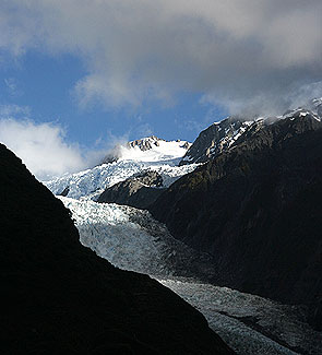 glaciers. D'immenses coulées de glace et de neige grises et blanches,