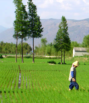 Les rizières : fabuleux paysages Les paysages de rizières en terrasse sont de ceux que nous attendions avec le plus d'impatience. A Dali, nous découvrons émerveillés des alignements de parcelles gorgées d'eau, une succession de bassins où le riz attend qu'on le récolte, des étendues sans fin de champs sagement aménagés entre lac et montagnes, une palette de végétation aux verts tous différents. Mieux encore, nous passons quelques jours à Ping'an et découvrons un sublime paysage de rizières aménagées non plus en plaines mais sur le flanc des collines.